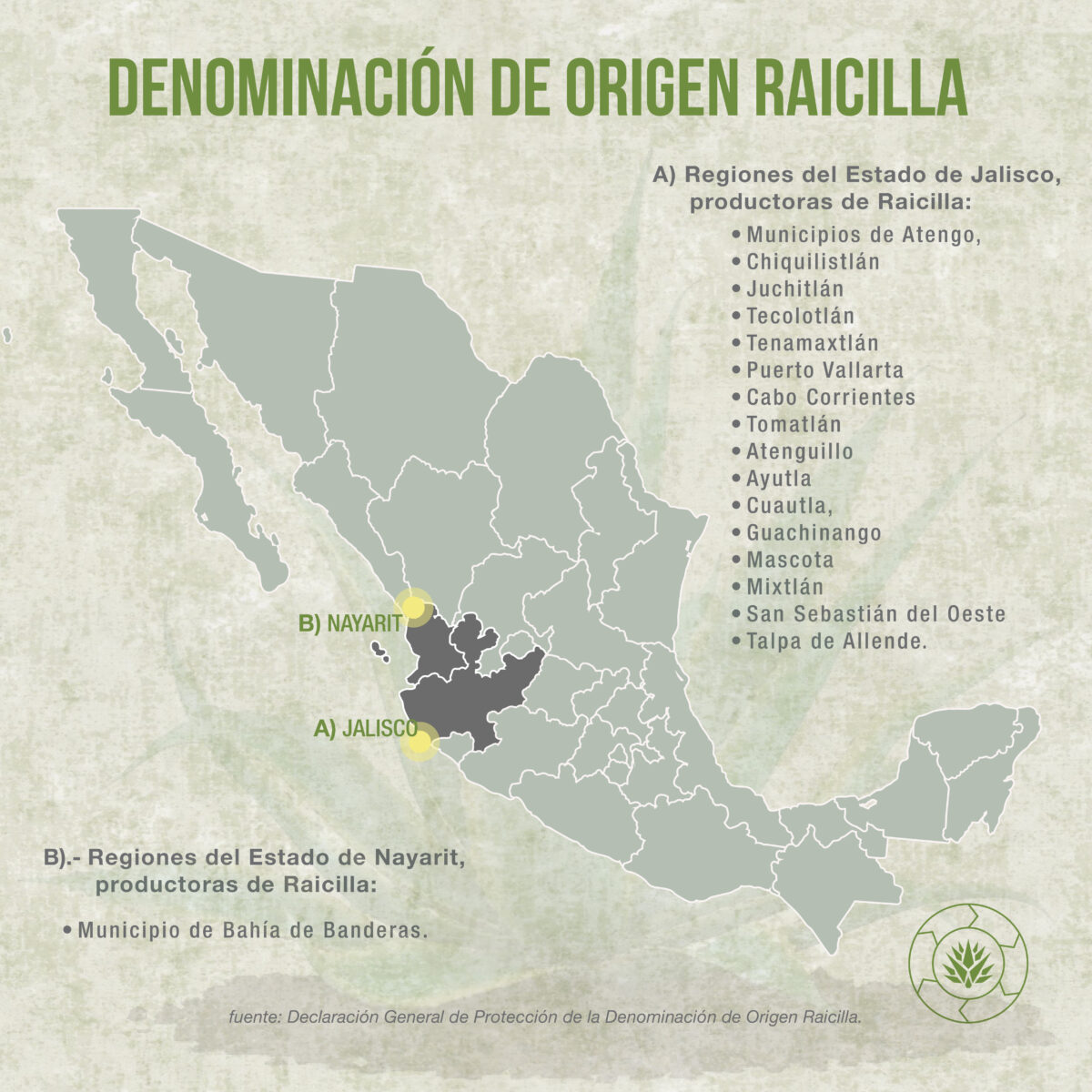 Recognized by its Designation of Origin, Raicilla is mainly produced in municipalities in Jalisco and Nayarit. This artisanal beverage is characterized by its production in unique climates and soils of the Costa Sierra Occidental region. The traditional knowledge of producers complements natural factors to create a unique drink that reflects the geographical and cultural diversity of its origin.